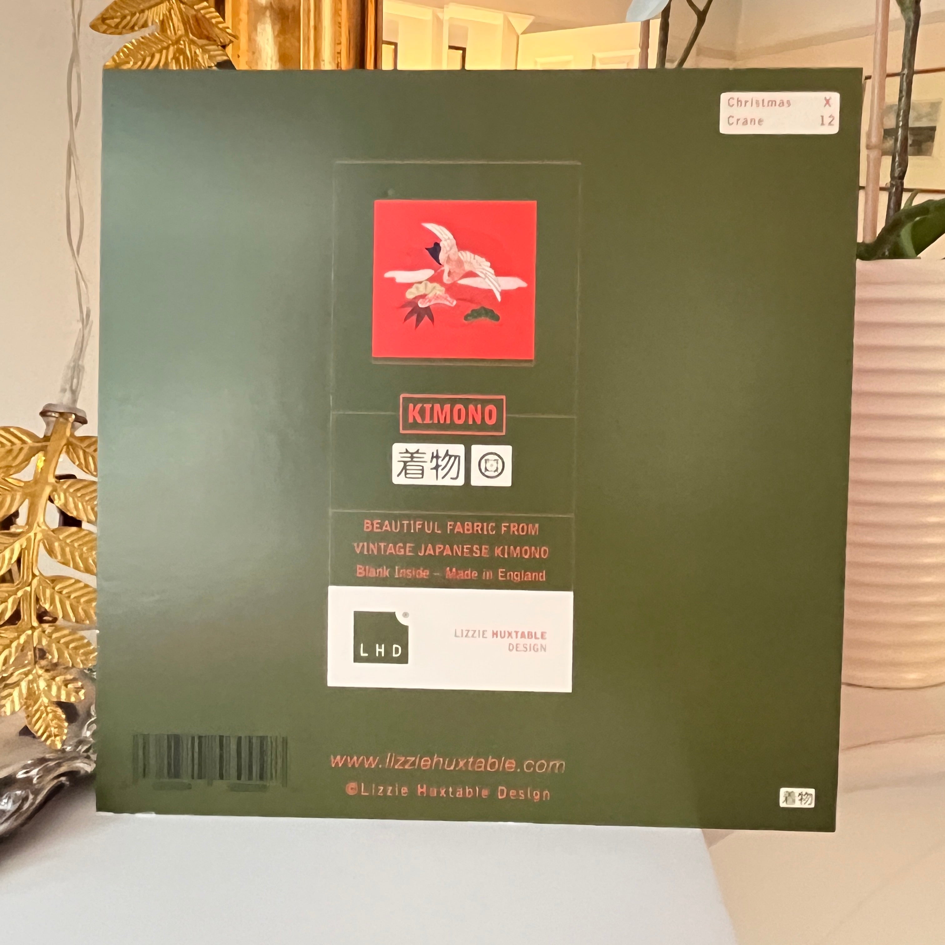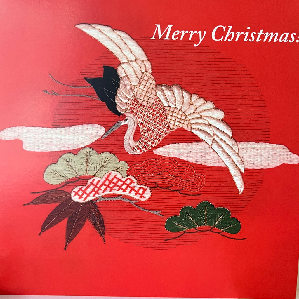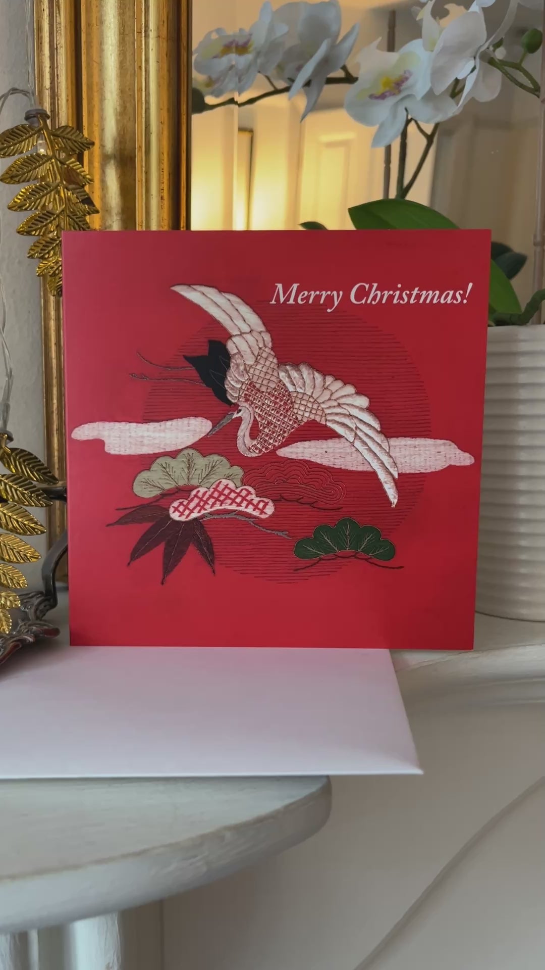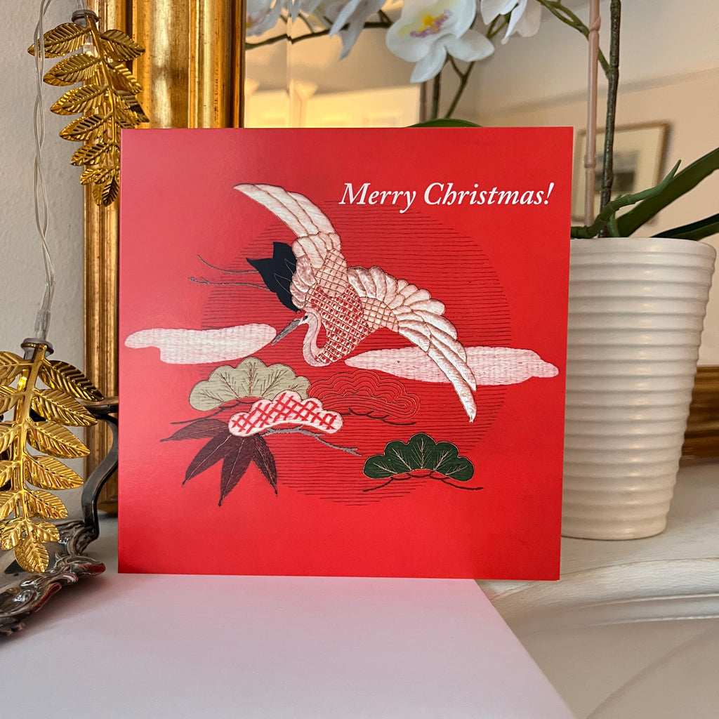 Brilliant red silk, with ivory and golden embroidery from a lovely vintage Japanese textile make a gorgeous Christmas card; UK Made, blank inside for special messages.